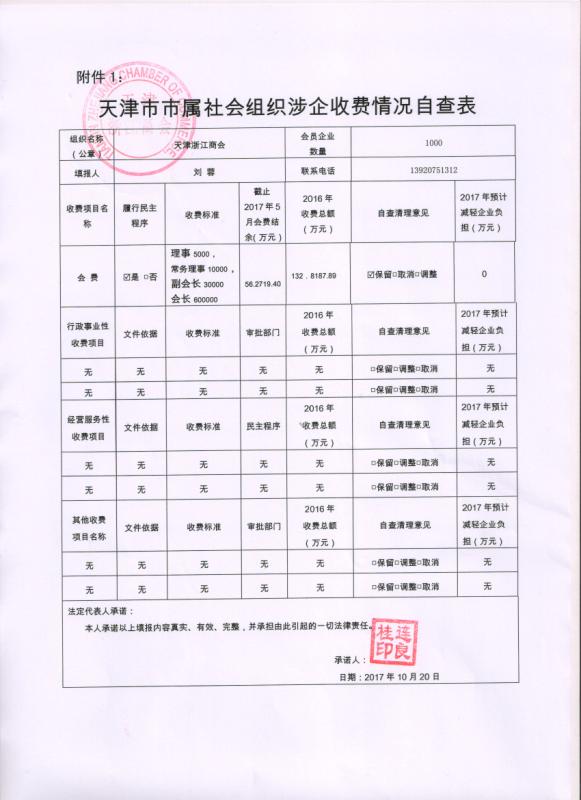 天津浙江商会涉企收费公示