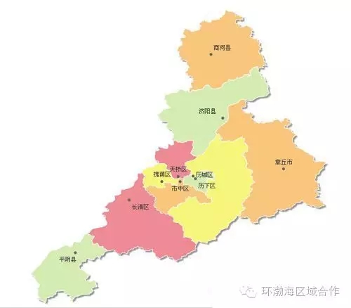 截至2016年,济南辖7个市辖区、3个县。市辖区:市中区、历下区、天桥区、槐荫区、历城区、长清区、章丘区;县:平阴县、济阳县、商河县。